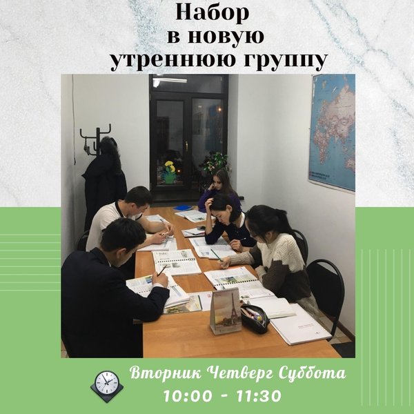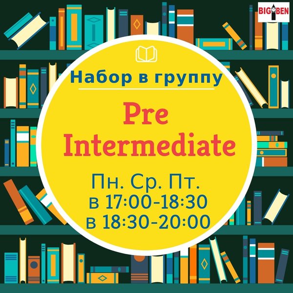 ВНИМАНИЕ!!! Идет набор в группы: Уровень: Pre — Intermediate Режим: Пон, Ср, Пт Время: 16:30 - 18:00 Уровень: Elementary Режим: Пон, Ср, Пт Время: 18:30 - 20:00 Уровень: Intermediate Режим: Вт,Чт, Суб Время: 18:30 - 20:00 УСПЕЙТЕ ЗАПИСАТЬСЯ!!! МЕСТА ОГРАНИЧЕНЫ!!!