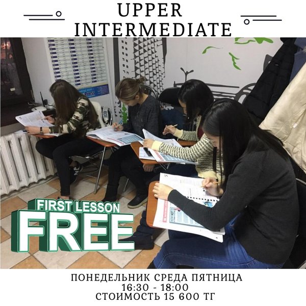 Приглашаем на БЕСПЛАТНЫЙ ПРОБНЫЙ УРОК в группу Upper Intermediate Занятия проходит 3 раза в неделю по 90 минут. Высокий уровень преподавания и нескучные уроки ждут Вас . Наши адреса: ул Толе би 73, уг ул Наурызбай батыра 71 пр. Абая 75, уг ул Масанчи _