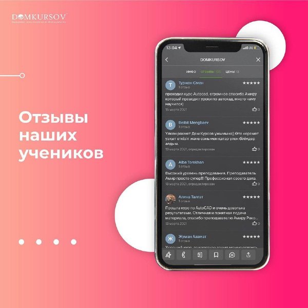 Отзывы выпускников Dom Kursov Рады, что с нами делятся впечатлениями о курсе, рассказывают какие инструменты были самыми эффективными и что удалось внедрить в работу Если вы хотите стать архитектором, дизайнером » курсы по для вас