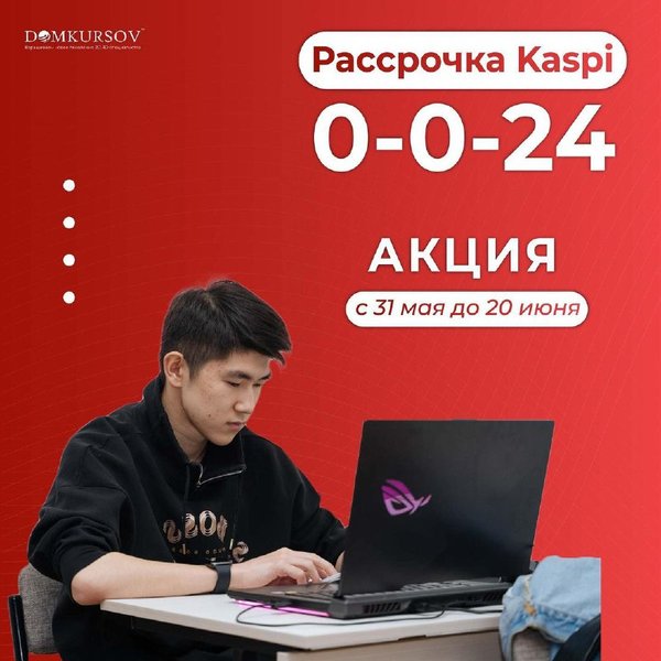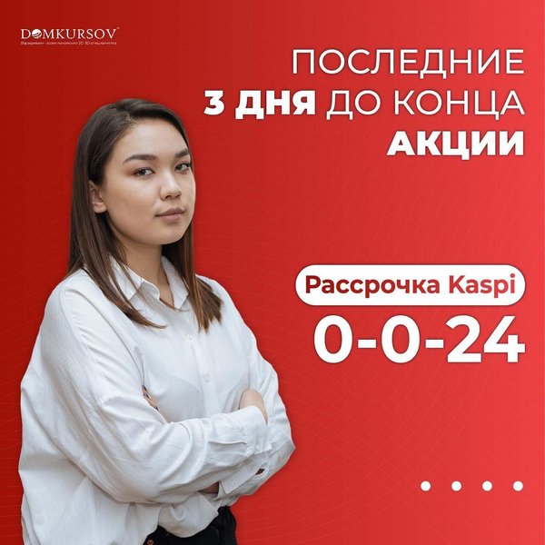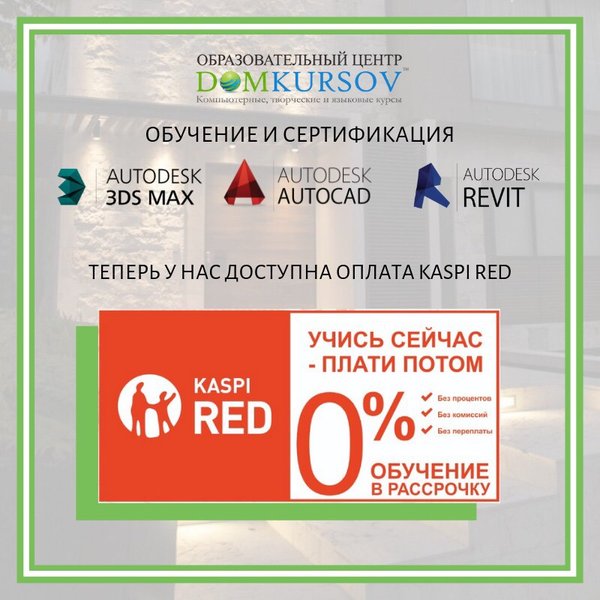 Для ценителей качества — изображение документом! Курсы в РАССРОЧКУ 3Ds MAX — от 6 209 тг/мес Revit — от 4 667 тг/мес AutoCAD — от 3 584 тг/мес Запишитесь на курс сейчас, платите потом с Kaspi! Без переплаты Рассрочка до 24 месяцев Акция с 31 мая до 20 июня Оставьте заявку по номеру: