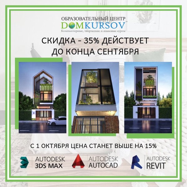 Получите практические навыки по проектированию и 3D-визуализации! Приходите в Dom Kursov и создавайте полноценные проекты Если еще не решили, записаться или нет » Читайте отзывы наших учеников, которые тоже когда-то начинали с нуля Все подробности по номеру: