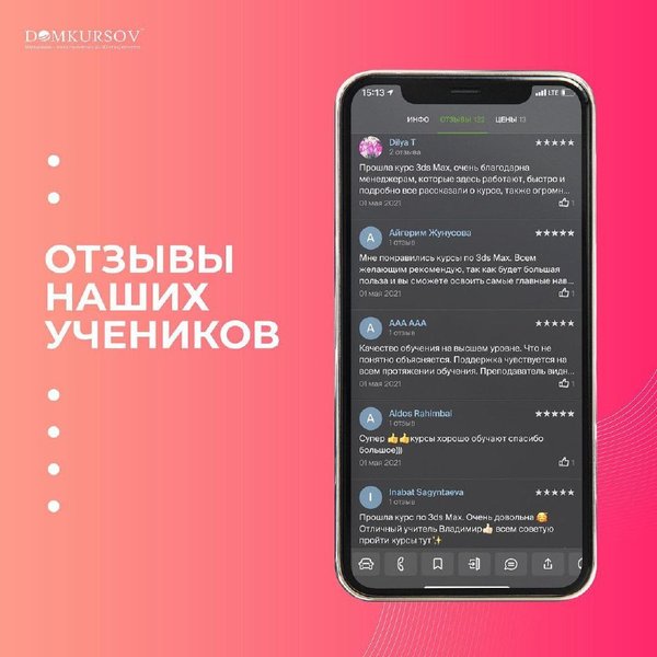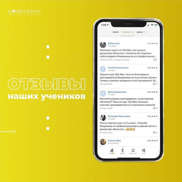 Для ценителей качества — изображение документом! Почему на обучение приходят именно в Dom Kursov? Читайте ответы наших учеников в 2ГИС и по ссылке в актуальных Сейчас у нас есть места в группах по 3Ds MAX / AutoCAD / Revit. Расписание групп в актуальных Успейте записаться по номеру: