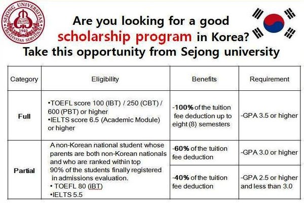 Внимание! Скидки на обучение в Южной Корее до 100% от университета Sejong! Университет Sejong был основан в 1940 году и предлагает обучение с применением передового опыта в области образования и научных исследований. Университет предлагает программы бакалавриата и магистратуры по различным направлениям, таким, как социальные науки, бизнес администрирование, туризм, естественные науки, инженерия, музыка, изобразительное искусство и физическое воспитание. Подробности узнайте у консультантов Global Study или по ссылке ниже:
