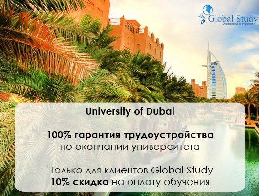 Поступайте в лучшие ВУЗы Дубая и получите диплом международного образца. Узнайте больше об университетах этой удивительной страны, среди которых филиал британского университета Heriot-Watt University, University of Wollongong, основанный Австралийским Университетом, SAE Institut — крупнейшее в мире учебное заведение по подготовке специалистов в области аудио, кино и мультимедиа и многие другие. Подробности здесь>