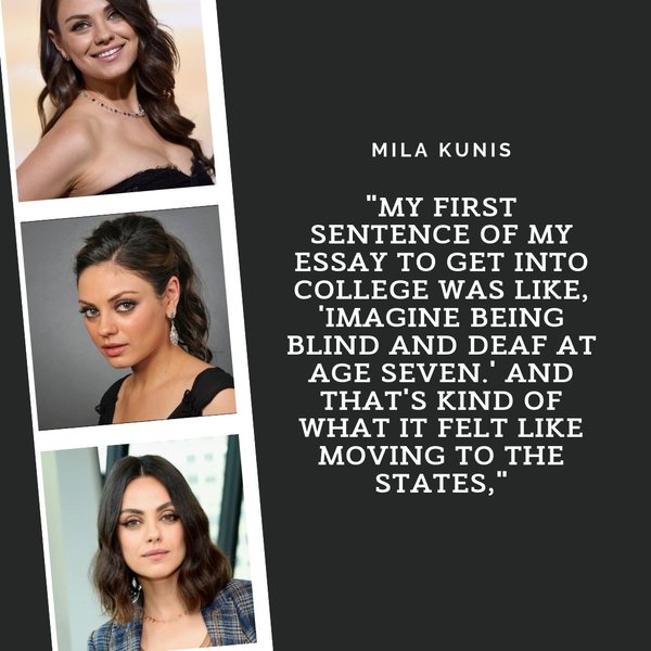 Мила Кунис — американская актриса, которая родилась в городе Черновцы в Украине. В 1991 году в семилетнем возрасте Мила с семьёй эмигрировала в США и поселилась в Лос-Анджелесе. Она с рождения говорила на русском и по прилету в США не знала английского. И все же, её семья прилетела в штаты в среду, а в пятницу она и её брат пошли в школу. Мила каждый день после школы плакала из-за того, что не понимала культуру, не понимала людей и не знала языка. „Представьте себя глухой и слепой в семь лет. Так примерно я себя и ощущала при переезде в Штаты»… — Читать дальше