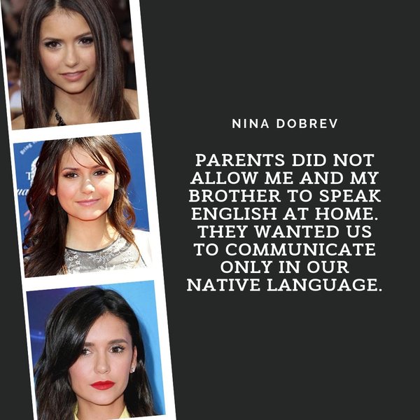 Актриса Нина Добрев родилась в Софии, столице Болгарии, 9 января 1989 года в семье программиста и художницы. При рождении ей дали типичное болгарское имя — Николина Константинова Добрева. В конце 80-х — начале 90-х с ослаблением влияния СССР в Болгарии начались масштабные реформы и страна переживала экономический кризис. Тогда родители Добрев приняли решение переехать в Торонто, Канаду, со своими двумя детьми — 2-летней Ниной и ее старшим братом Александром. Большую часть жизни девушка провела в этой стране, благодаря чему, кроме болгарского, в… — Читать дальше