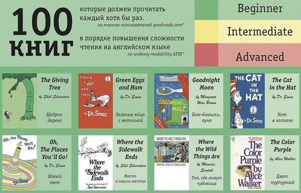 Just English (27.07.2016): 100 книг на английском: от простого к сложному Начинать чтение книг на английском языке лучше постепенно с книг, написанных простым, почти интуитивно доступным языком. И мелкими шагами продвигаться к тяжеловесам мысли и языковых изысков.