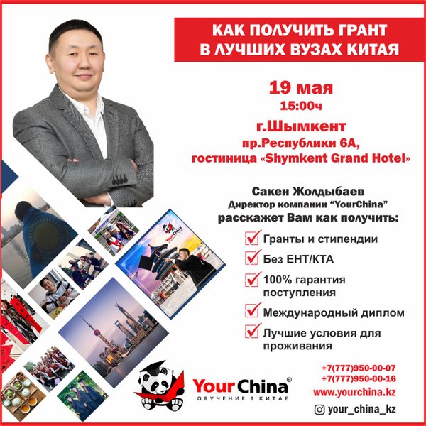 ️Только 28 апреля! Директор компании «YourChina» Сакен Жолдыбаев расскажет вам как поступить на грант в университеты Китая без ЕНТ и КТА!