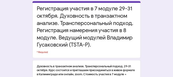 В процессе! --- Наталия Панкратова (26.10.2021): Уже в эту пятницу 29 октября обучение Онлайн в zoom На модуле «Духовность в ТА» будет: