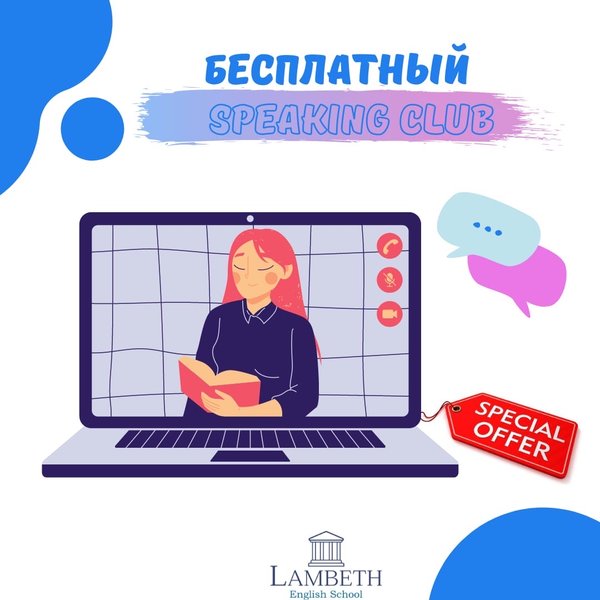 Запишитесь на курсы английского языка и получите Speaking Club с носителем языка БЕСПЛАТНО! ⠀ Speaking Club проходит 2 раза в неделю ⠀ Если вы: ⠀ ️хотите развивать и практиковать разговорную речь; ⠀ ️хотите пополнить словарный запас; ⠀ ️хотите раскрыть свои возможности и уверенно говорить на английском ⠀ тогда скорее записывайтесь к нам на курсы английского языка! ⠀