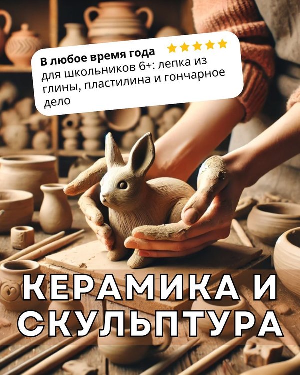 Керамика и скульптура для школьников – записаться можно в любое время! Приглашаем ребят на годовую программу по лепке, гончарному делу и скульптуре! Это не просто занятия, а погружение в мир творчества, где дети учатся работать с разными материалами и создают собственные шедевры. Что ждёт юных мастеров? Работа с глиной – лепка и гончарное дело. Создание скульптур из цветного и скульптурного пластилина. Развитие фантазии, моторики и художественного вкуса. Тёплая атмосфера и поддержка опытных педагогов. Можно присоединиться в любо… — Читать дальше