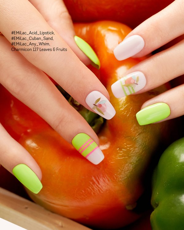 Для этого дизайна мы использовали новинки осень/зима 20/21 — #EMiLac_Stone_Jungle 291 из коллекции #EMiLac_B_Urban, Charmicon #143 Sprigs, #144 Be Nice