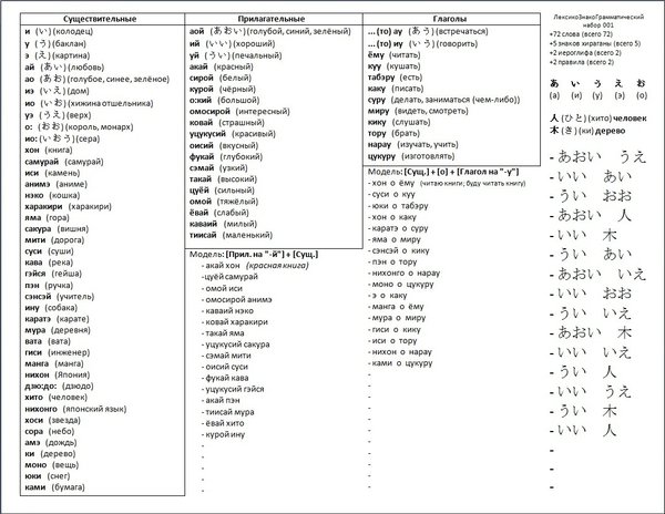 — Грамматика: объяснение не самое простое, но присутствует почти вся грамматика японского языка, за исключением нескольких тем