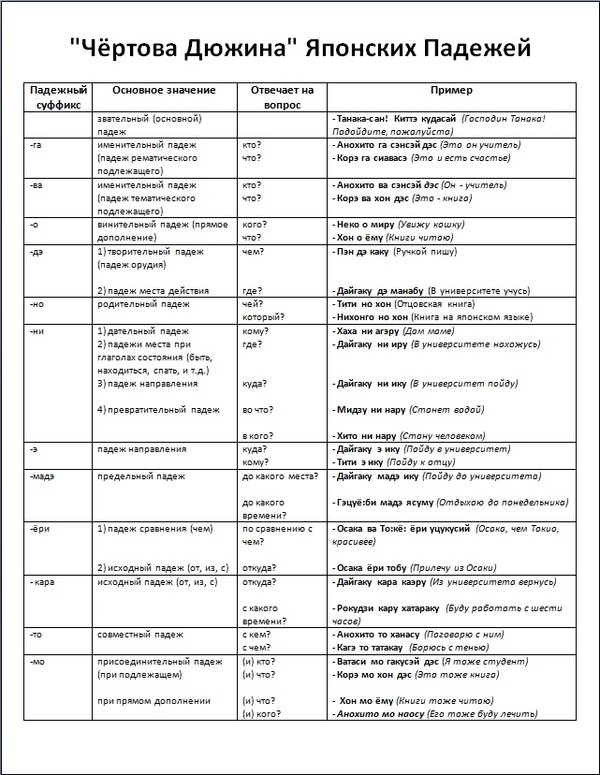 В этот раз, на нашем субботнем бесплатном занятии, мы будем изучать японские падежи. Файл прилагается)