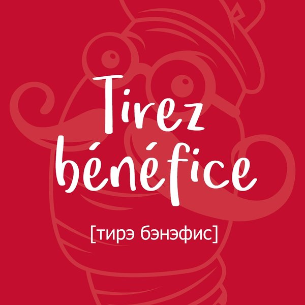 мотрите на картинку, вы увидите до боли знакомое слово “bénéfice”. В переводе с французского оно означает “прибыль”, “пользу” или даже “преимущество”. До английского языка это слово дошло почти в первозданном виде. Только вместо легкого и певучего слога “-ice”, англичане получили в пользование бескомпромиссную букву “t”. Так и родилось на свет слово “benefit”. Надеемся, что эта информация вам где-нибудь (ну хотя бы чуточку) пригодится. Иначе мы зря переводили вам эту фразу с картинки. ⠀ Пример использования: ⠀ — Зачем вы, Ульяна, готовите рис? Сидите, читайте, тирэ бэнэнфис. ⠀ ⠀