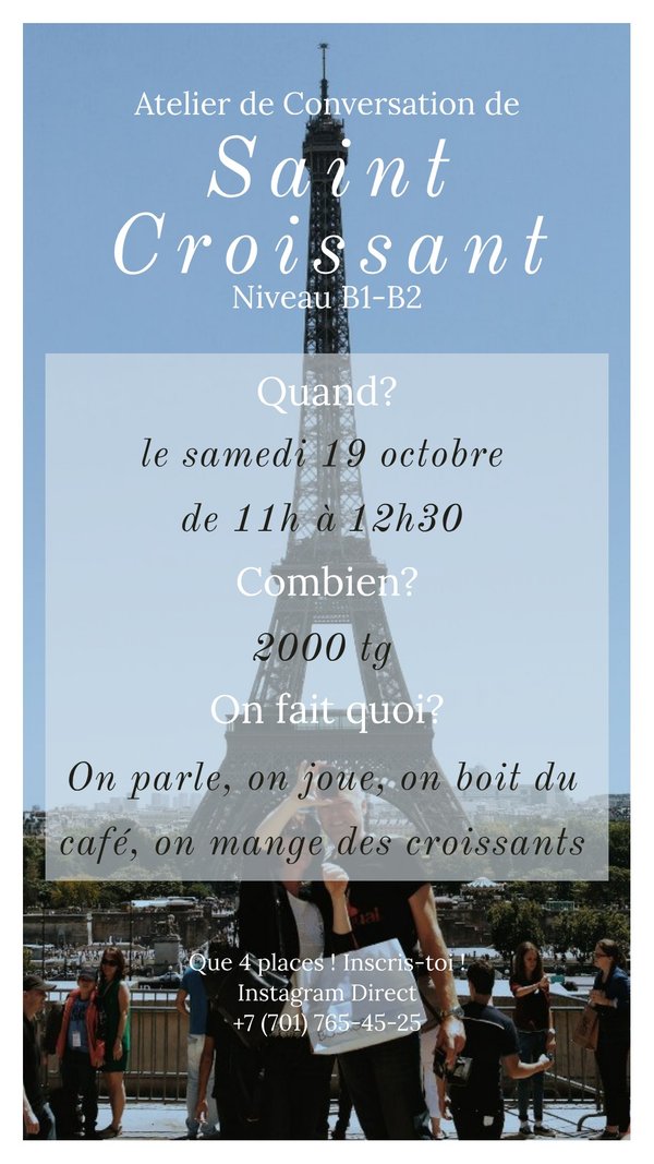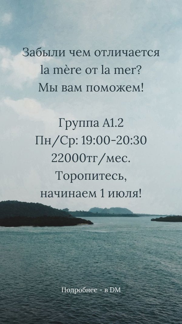 Coucou! Набираем новые группы: А0 (для без кто совсем не парлеву), А1.2 и А2.1 (начальные). В группе всего 4 человека, успей записаться! Пиши в Telegram или в Direct Instagram