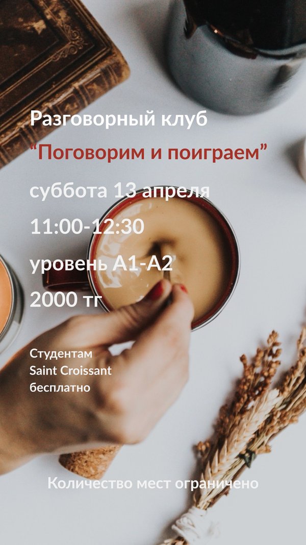 Записывайся на разговорный клуб! Будем пить кофе и есть круассаны! WhatsApp/Telegram