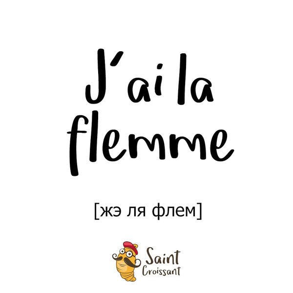 Dieu merci, c'est vendredi спешим мы вам напомнить. А ещё хотели сказать, что если работа/учёба/безделье высосали из вас уже все соки, то можно уже не бороться, а просто принять поражение (хотя бы разочек), распластаться на полу/в кресле/кровати и прохрипеть нашу фразу дня и со спокойной душой «пофлемить». J'ai la flemme [жэ ля флем] – мне лень. ⠀ ⠀
