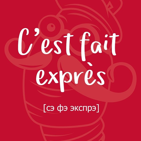 ал(а) это не нарочно (не умышленно). Коллеги не сдали отчеты в срок? Кто-то притащил на ваш день рождения торт с орехами, на которые у вас аллергия? Криворукая одногруппница разлила кофе на вашу дипломку? — C'est fait exprès — это сделано умышленно (нарочно, с умыслом). Не перепутайте C’est fait exprès [сэ фэ экспрэ] – это сделано умышленно (нарочно, с умыслом). ⠀ ⠀