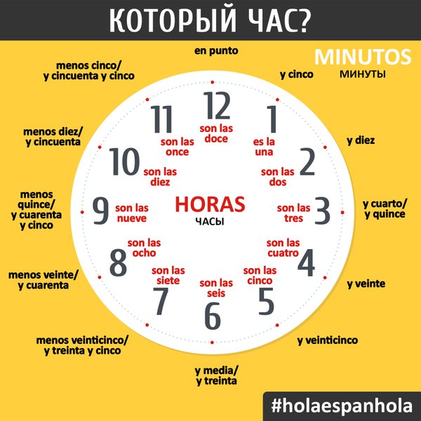 ¿Qué hora es? (Который час?) Как правильно ответить на этот вопрос? подсматривайте по шпаргалке! Сохраняйте и пользуйтесь ️ Пример прочтения: Es la una y veinte (Двадцать минут второго - 1:20) Son las seis y cuarto (Четверть седьмого - 6:15)