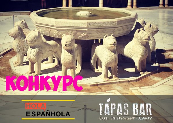 романтический ужин на двоих в самом лучшем испанском ресторане города Алматы — Tapas Bar. Почувствуй атмосферу Испании! Это будет незабываемо! А теперь, о самом конкурсе: мы будем выкладывать вам подсказки с изображениями, вам нужно будет отгадать, что это за место или здание и какой это город. Тот, кто справится с этим заданием лучше всех, получит незабываемый приз! Вперед, друзья, к новым эмоциям и свершениям!