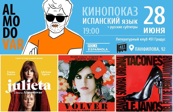 на священника и, когда Педро Альмодовару исполнилось 8 лет, его отправили сдавать экзамены в приходскую школу Отцов-салестинцев и братьев-францисканцев. В это время кино для Альмодовара стало настоящим пристрастием. В 16 лет знаменитый режиссер решил переехать в Мадрид, с пустыми карманами, зато с неиссякаемым желанием изучать кинематограф и творить свои собственные картины. Этим летом мы посмотрим его картины вместе с вами! Ожидайте анонсов
