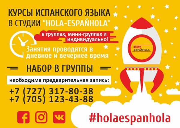 Успейте записаться ⠀ Запись в группы проводится только по предоплате (2500 тг за первый пробный урок). ⠀ Hola-Españhola всегда на связи WhApp (прием звонков 10:00—19:00⏳) ⠀ А также вы можете записаться на индивидуальные уроки проходящие как в офлайн, так и в онлайн режимах (по Skype и Zoom).
