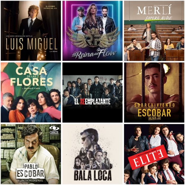 вперед, налетайте! 1. LA ESCLAVA BLANCA 2. SOR JUANA INES DE LA CRUZ 3. NAILED IT! MEXICO 4. GRAN HOTEL 5. CELIA 6. LA CASA DE FLORES 7. VELVET 8. EL INTERNADO 9. ELITE 10. SOBREVIVIENDO A ESCOBAR 11. SIEMPRE BRUJA 12. MADE IN MEXICO 13. EL BARCO 14. LA CASA DE PAPEL 15. GO! VIVE A TU MANERA 16. LA NINA 17. EL TIEMPO ENTRE COSTURAS 18. LA REINA DEL FLOW 19. LUIS MIGUEL 20. EL REEMPLAZANTE 21. PABLO ESCOBAR: EL PATRON DEL MAL 22. MOROCCO: TIEMPOS DE GUERRA 23. LAS CHICAS DEL CABLE 24. ALTA MAR 25. BALA LOCA 26. INGOBERNABLE 27. SILVANA SIN LANA 28. MAR DE PLASTICO 29. EL MINISTERIO DEL TIEMPO 30. MERLI 31. CLUB DE CUERVOS 32. EL CHAPO
