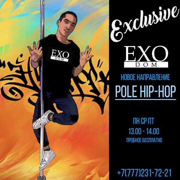 нным оборудованием и комфортабельным залом для тренировок любого типа и уровня. Студия танцев EXO.DOM возглавляется профессиональными тренерами, которые успешно вносят свой творческий вклад и преданность местной индустрии танца на пилоне и спортивной индустрии. Pole dance, или танцы на пилоне – позволяет быстро достичь стройности и рельефных мышц, и в то же время – это очень красиво. Pole dance — это новый вид спорта! — Способствует похудению — Сделает вас пластичными и грациозными — Дарит уверенность в себе — Развивает силу и выносливость — Раскрывает и окрыляет в прямом смысле слова Открыт набор ПРОБНОЕ ЗАНЯТИЕ БЕСПЛАТНО Инстаграмм компании: Сайт компании: