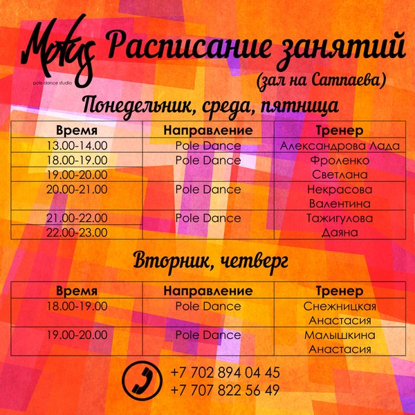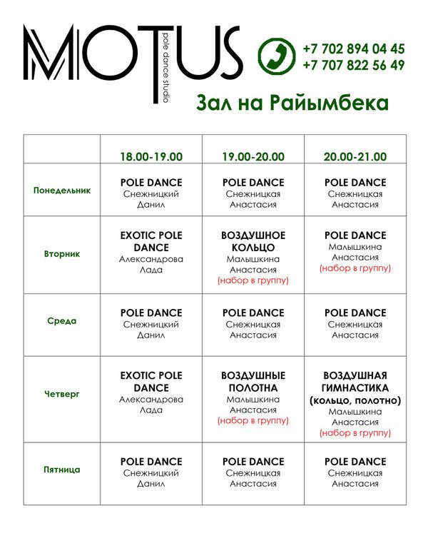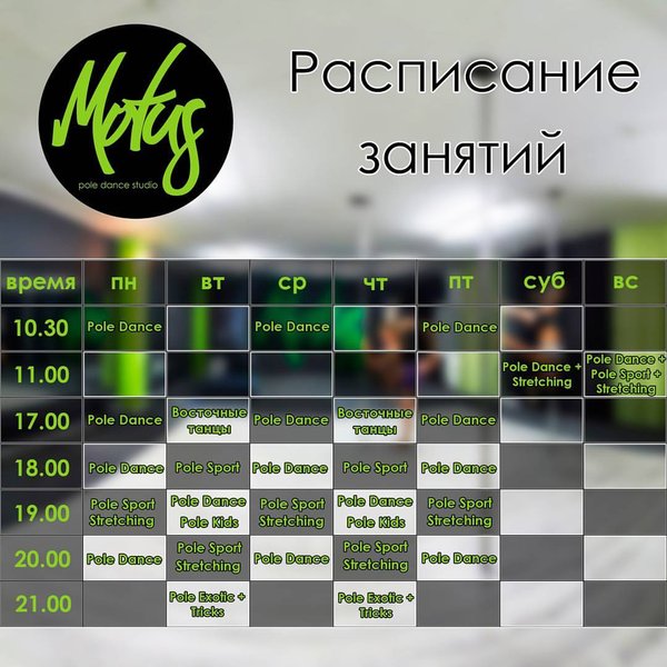 Расписание занятий в студии танца на пилоне Motus!!!)))