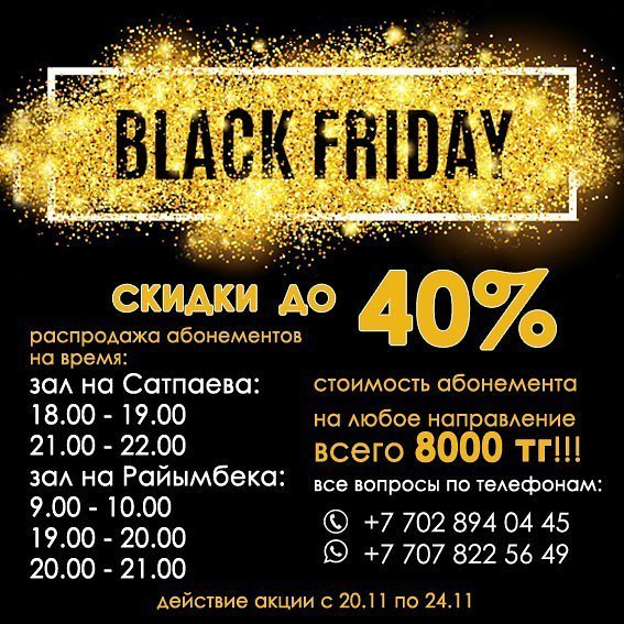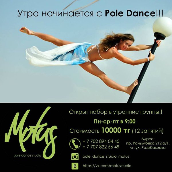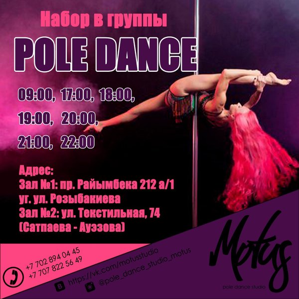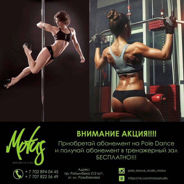Анастасия Данил (18.11.2017): Black Friday in Motus!!! Налетай, разбирай абонементы по нереально низкой цене!!!! Всего 8000 тг на направления Pole Dance и Exotic Pole Dance!! P. S. Акция распространяется только на новых клиентов!! ЗАПИСЬ ПО ТЕЛЕФОНАМ: