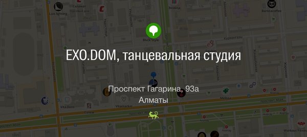 EXO.DOM РЕЙТИНГ 2 gis (5 баллов) EXO.DOM — специализированная танцевально-спортивная школа в центре Алматы. Студия получила самый высокий рейтинг 2gis 5 баллов от довольных клиентов! Студия танцев на пилоне «EXO.DOM», несёт миссию по раскрепощению людей и раскрытию красоты. У нас нет ограничений по полу или телосложению, мы раскроем потенциал в каждом! Студия проводит обучение танцам на пилоне, постановка группового танца, подготовка к соревнованиям, индивидуальные и групповые тренировки. Танцевальная студия располагает всем необходимым совреме… — Читать дальше
