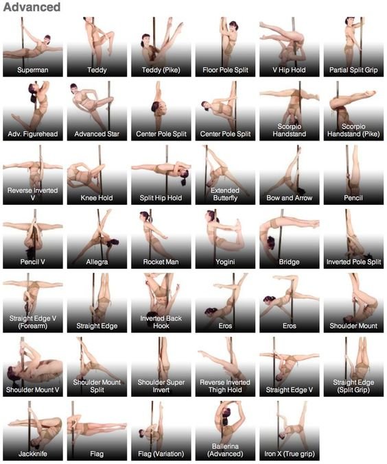 Поулденсеры среднего уровня (они же «продолжающие», они же Intermediate), ликуйте! Подборка новых трюков для тех, кто уже умеет, но хочет сложнее, выше и круче: «Жанин Твист» «Рация» «Брасманки» «Лук и стрелы» «Журавлик» «Тюльпан» «шпагат Марион» «шпагат Клео» «Зубная щетка» «Лебедь Сохраняй, повторяй и береги колени)