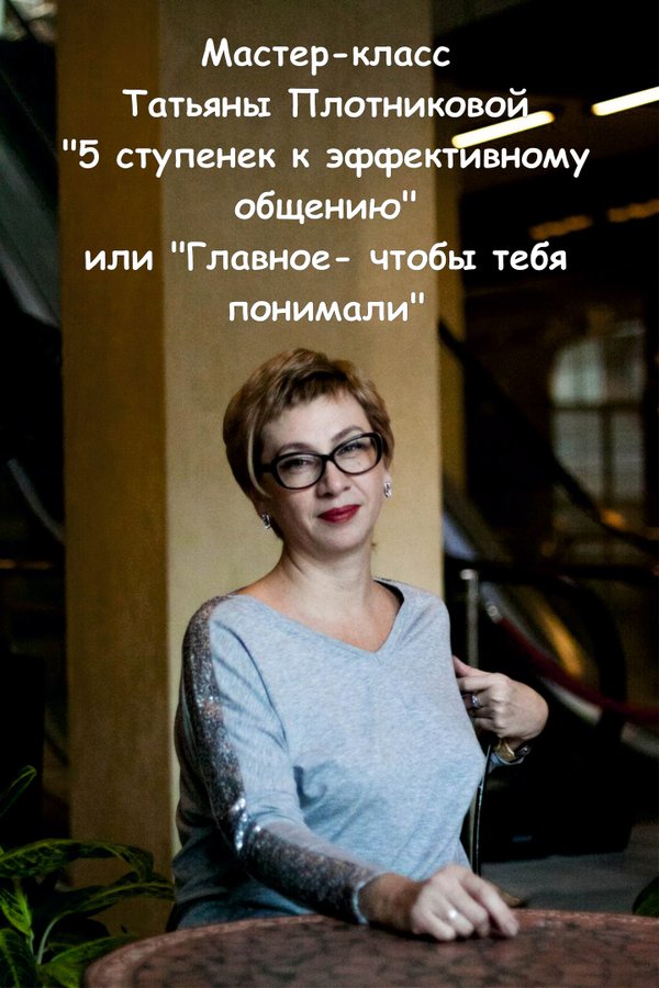Мастер-класс «5 ступенек к эффективному общению» 22 декабря 2016 г. 18.30 - 22.00 В преддверье новогодних праздников Тренинг центр «Созвездие» дарит жителям города Алматы потрясающую возможность совершенно бесплатно посетить мастер-класс от практикующего педагога с многолетним стажем, сертифицированного коуча и специалиста по межличностным отношениям из России, Татьяны Плотниковой. В своем мастер-классе «5 ступенек к эффективному общению» или «Главное — чтобы тебя понимали» Татьяна расскажет о том, что такое коучинг и чем он отличается от обычно… — Читать дальше