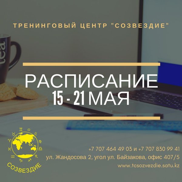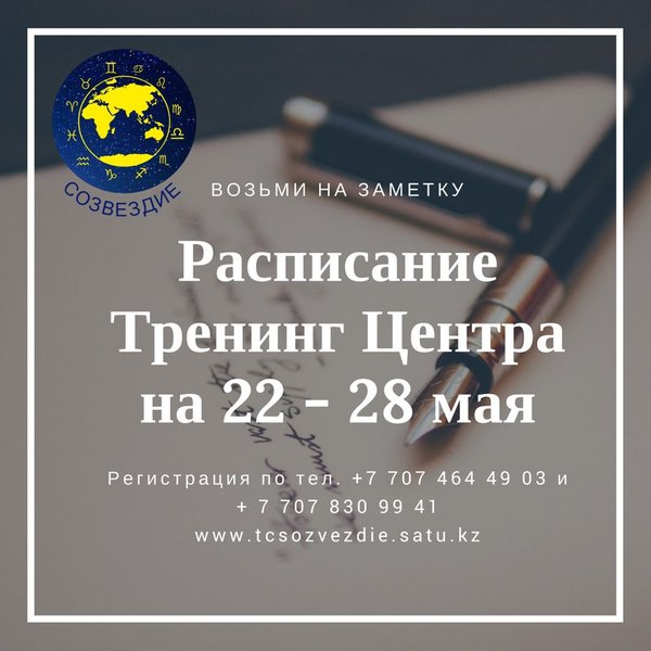 ать процветающий бизнес. Тренинговые программы одинаково хороши для всех, кто готов развиваться и личностно рости. Мы можем разработать тренинг, семинар или тимбилдинг специально для Вас! Да!!! У нас есть программы, на которые мы даём гарантию эффективности! Или мы вернем вам деньги) Что мы можем предложить именно вам? Узнай по телефону e-mail: sozvezdie.kz@gmail.com