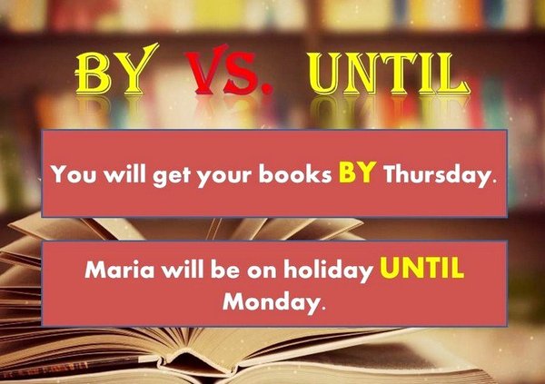 не жили в этом доме). «UNTIL» таке используется в отрицательных предложениях. Например: «Details will not be available until January.» — Детали не будут известны (доступны) до января (январь — самый ранний ожидаемый срок получения деталей). Если что-либо происходит до определенного времени или в это время, употребляется «BY». Этот предлог часто используется для указания крайнего срока. На русский язык это предлог удобно переводить как «к». Например: «You have to finish by August 31.» — Ты должен закончить к 31 августа. (31 августа — последний день, когда можно закончить (что-то), хлтя можно и раньше). «BY» также используется в вопросах. Например: «Will the details be available by December?» — Будут ли детали известны к декабрю? (В вопросе имеется в виду, будут ли детали известны не позднее декабря).