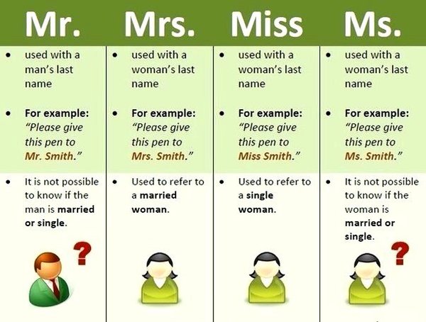 ПОЗНАЕМ НЮАНСЫ ОБРАЩЕНИЯ К МУЖЧИНАМ И ЖЕНЩИНАМ НА АНГЛИЙСКОМ ЯЗЫКЕ Сохраняем, чтобы не потерять Mr = мистер (неважно, женатый или неженатый мужчина) Mrs = миссис (замужем) Miss = мисс (не замужем) Ms = мисс (неизвестно замужем или нет)
