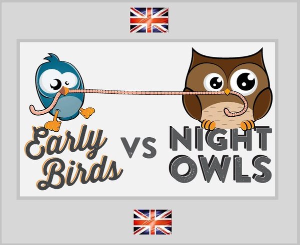 СОВЫ-ЖАВОРОНКИ В АНГЛИЙСКОМ NIGHT PERSON • sleepyhead — соня • night owl — сова • late riser — тот, кто поздно встает MORNING PERSON • early bird — ранняя пташка • morning lark — жаворонок • early riser — тот, кто рано встает