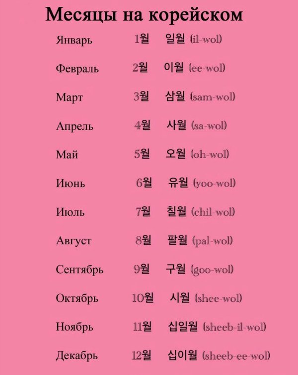 МЕСЯЦЫ НА КОРЕЙСКОМ