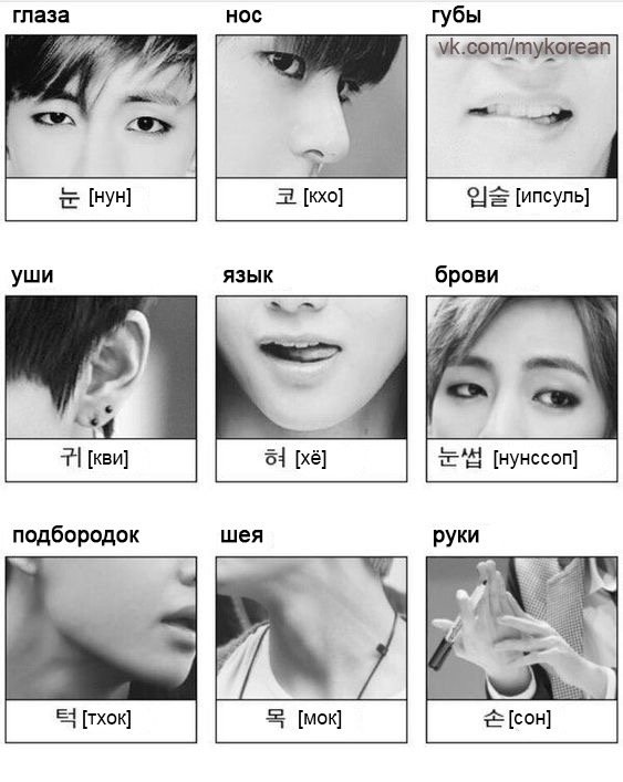 일 분[иль бун] — одна минута 118. 일 초[иль чо] — одна секунда 119. 시(시간)[щи / щиган] — время, промежуток времени 120. 뭐[мво] — что 121. 책[чэк] — книга 122. 사전[саджон] словарь 123. 공책[кончэк] — тетрадь/ записная книжка/ блокнот 124. 연필[ёнпиль] — карандаш 125. 볼펜[больпэн] — ручка 126. 가방[кабан] — сумка 127. 개[кэ] — собака 128. 고양이[кояни] — кошка 129. 눈[нун] — глаз/снег 130. 코[ко] — нос 131. 입[иб] — рот 132. 귀[кви] — ухо 133. 머리[мори] — голова 134. 배[пэ] — живот 135. 다리[тари] — нога 136. 손[сон] — рука 137. 머리 카락[мори карак] — волосы 138. 의사[ыйса] — врач 139. 손님[сонним] — гость 140. 부부[бубу] — супруги 141. 남편[нампён] — муж 142. 아내[анэ] — жена 143. 우산[усан] — зонт 144. 일찍[ильджчик] — рано 145. 많이[мани] — много 146. 너무/아주[ ному/аджу] — очень 147. 참[чам] — очень, действительно 148. 좀[джом] — немного 149. 재미있다[джэмиитта] — интересный 150. 재미없다[джэмиопта] — неинтересный 151. 맛있다[мащитта] — вкусный 152. 열심히[ёльщими] — усердно 153. 배(가) 고프다[бэга гопыда] — голодный 154. 피곤 하다[пигонада] — усталый 155. 봄[бом] — весна 156. 여름[ёрым] — лето 157. 가을[каыль] — осень 158. 겨울[кёуль] — зима 159. 비[би] — дождь 160. 바람[барам] — ветер 161. 춥다[чубта] — холодный 162. 덥다[топта] — жаркий 163. 하늘[ханыль] — небо 164. 태양[тэян] — солнце 165. 강아지[канаджи] — щенок 166. 오전[оджон] — первая половина дня (до 12 дня) 167. 오후[оху] — вторая половина дня (с 12 дня) 168. 주[джу] — неделя 169. 다음 주[таым джу] — следующая неделя 170. 달[таль] — месяц 171. 쇼핑[щёпин] — шопинг 172. 휴가[хюга] — отпуск 173. 하루[хару] — день, сутки 174. 잘[джаль] — хорошо 175. 아직[аджик] — пока что 176. 자주[чаджу] — часто 177. 선물[сонмуль] — подарок 178. 말[маль] — речь 179. 목[мок] — горло 180. 아프다[апыда] — болит 181. 약[як] — лекарство 182. 한국[хангук] — Корея 183. 러시아[рощиа] — Россия 184. 중국[чунгук] — Китай 185. 카자흐스탄[каджахисытан] — Казахстан 186. 벨로루시[бэллоруши] — Беларусь 187. 독일[тогиль] — Германия 188. 우크라이나[укыраина] — Украина 189. 미국[мигук] — США 190. 배(가) 부르다[бэга бурыда] быть сытым 191. 보통[ботон] — обычно 192. 취미[чвими] — хобби 193. 재미[джэми] — интерес 194. 또[тто] — также 195. 가끔[каккым] — иногда 196. 차[ча] - чай, машина 197. 같이[качи] — вместе 198. 문[мун] — дверь 199. 창문[чанмун] — окно 200. 벽[бёк] — стена
