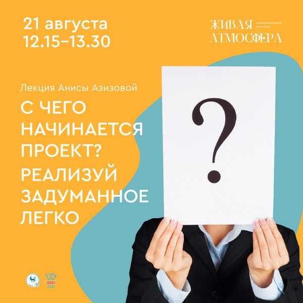 правильно разработать идеи и поставить четкую цель? Это первые шаги в реализации задуманного и делая первый шаг верно, Вы будете на пути к успеху. Так как первый шаг зачастую бывает самым важным и ценным. Приглашаем Вас на лецию «С чего начинается проект? Реализуй задуманное легко», на котором мы разберем понятие проектное мышление, проектная деятельность и первые этапы разработки проекта — идея и цель. Лекция для всех, кто: 1) интересуется темой управления, планирования, реализации проектов, пониманием сути проектного мышления и проектной деятельности. 2) сомневается в реализации задуманного, кто не знает с чего начать проект, кому сложно увидеть жизненный путь проекта. 3) хочет лучше понимать важность этапов разработки проекта — идеи и цели. Ведущая: Аниса Азизова — психолог, супервизор, автор и преподаватель курса «Основы управления», директор института МИППИП Интеграция, руководитель центра личностного развития Жива. Состоится 21 августа 2022 года в 12.15, в рамках психологического интенсива Живая Атмосфера. Узнать расписание и пройти регистрацию можно по номеру