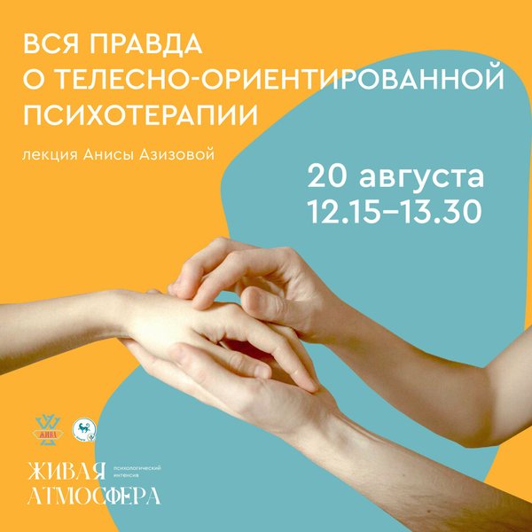 чем плюсы подхода? Во всех вопросах Вы сможете разобраться на лекции «Вся правда о Телесно-Ориентированной Психотерапии». Лекция раскроет секреты и поведает о истории и актуальности направления. Расскажет о важности понимания противопоказаний в применении направления. Проведёт лекцию Аниса Азизова — практический психолог, супервизор, действительный член ОППЛ, директор и преподаватель Международного Института Практической Психологии и Психотерапии «Интеграция», соучредитель центра личностного развития «Жива» в Алматы. Лекция пройдет в рамках психологического интенсива «Живая Атмосфера» 20 августа с 12:30 - 13:30. Расписание интенсива смотрите в актуальных stories.