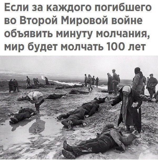 ------------------------------------ — Нет ни одной семьи, которую бы не затронула война. — Все нынешние и будущие поколения должны знать и помнить своих дедов, прадедов, бабушек и прабабушек подаривших Мир и спокойствие. — Все люди без исключения должны хранить память и никогда не допустить повторения такой чудовищной и страшной войны! ! В Великой Отечественной войне погибло — 26,6 миллиона человек. ! На фронт из Казахской ССР было мобилизовано более 1 миллиона 200 тысяч солдат. ---------------------------------------------------------------------- Так давайте вечно Помнить и Чтить Память настоящих героев! !!! Пока люди будут помнить эту страшную Войну, то она НЕ повторится!!!
