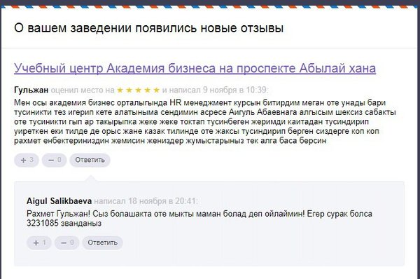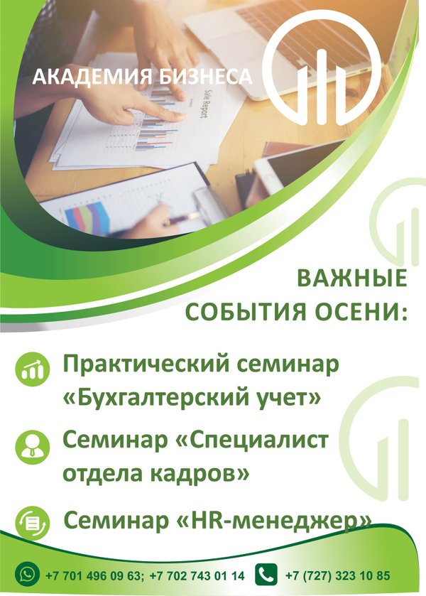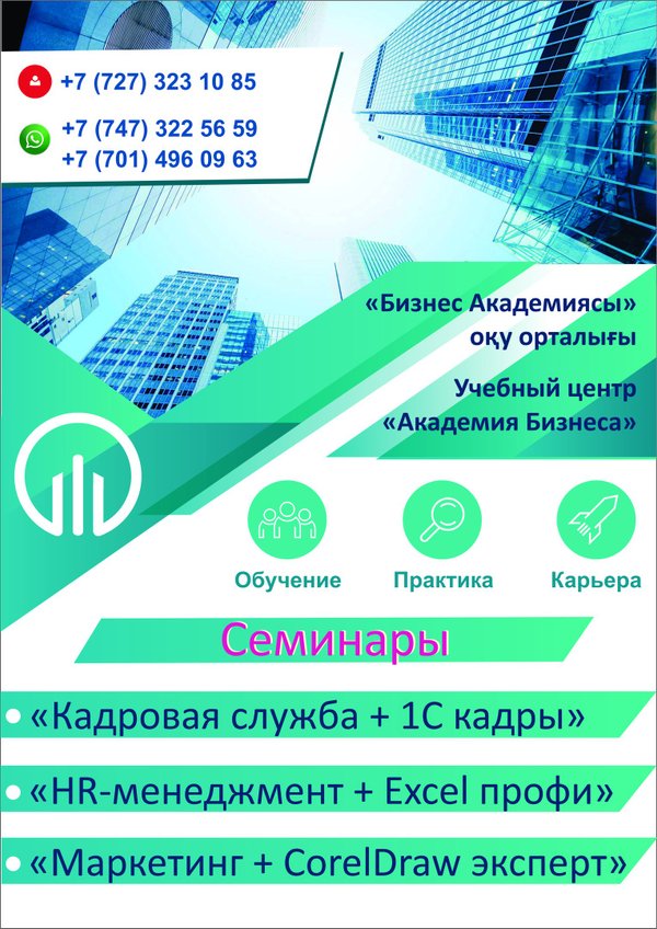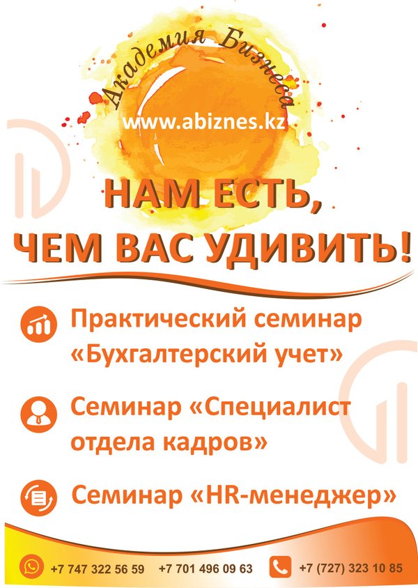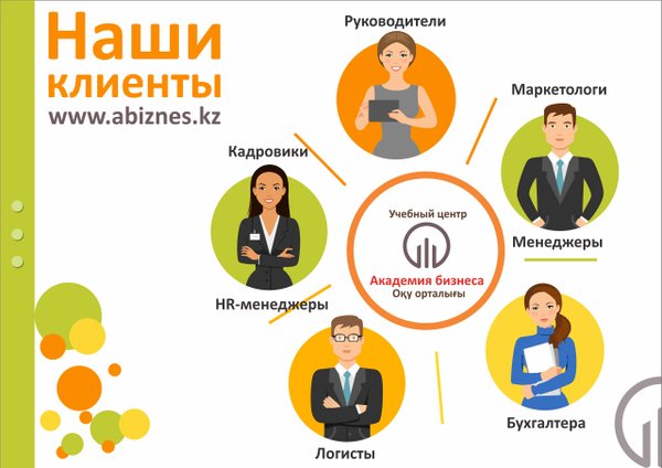 нь. Хотелось бы обучиться маркетингу у Ирины Анатольевны, думаю и это не загорами Советую всем Учебный центр » Академия Бизнеса », если хотите узнать больше по бухгалтерии, по HR-менеджменту, по кадровому делопроизводству, переклассифицироваться на другую сферу деятельности, повысить свой уровень во всех направлениях, то Вам точно сюда P.s хотела сказать сестре Ляззат спасибо, благодаря ей, Я узнала об этом учебном центре))