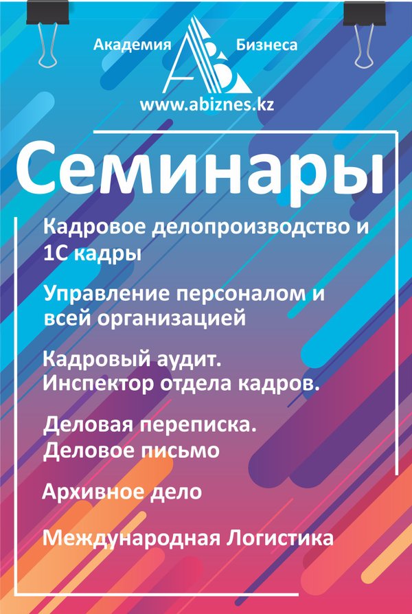Курсы кадрового делопроизводства в Алматы (26.03.2018):