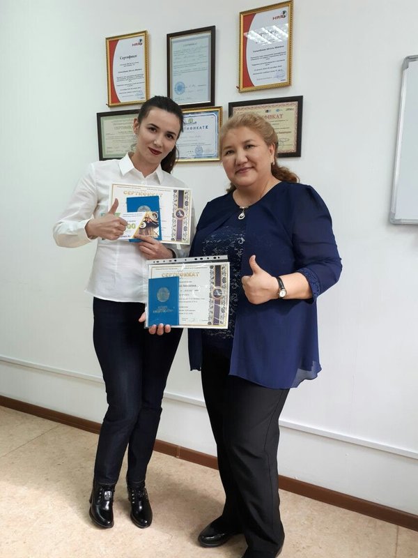 Выпускница Семинара «Специалист отдела кадров» Айнура и Бизнес-тренер Салыкбаева Айгуль Абаевна