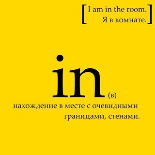 the third week of April, in the future Исключения: in the morning, in the evening, in the afternoon 2. В средней части пирамиды находится предлог ON Это временные периоды, которые чуть меньше: дни недели и даты Примеры: on my birthday, on Saturday, on June 8th, on the weekend (так говорят в US, в UK говорят at the weekend) 3. В нижней части AT Для совсем маленьких периодов времени: часы, дни, конкретные события Примеры: at 9:00 PM, at lunch, at dinner, at the start of the party, at sunrise, at the start of the movie, at the moment Не менее круто эта пирамида работает для пространства: 1. Самая широкая часть IN Для обширных пространств: страны, штаты, города, районы Примеры: in the United States, in Miami, in my neighborhood 2. Средняя часть ON Для протяженных простанств: улицы, пляжи, реки Примеры: on Broadway Street, on the beach, on my street 3. И последняя AT Для совершенно конкретных мест: номер дома, здание, помещение Примеры: at 345 broadway street, at the store, at my house И бонус относительно предлогов для размещения чеголибо. Тут тоже просто: ON это все плоские поверхности (грубо говоря 2D): стол, стена, страница, т.е. on the floor, on the wall, the book is on the table, on a page А так же это публичный транспорт: on the bus, on the plane, on a boat, on a ship IN это закрытые пространства (грубо говоря 3D): здание, кухня, стакан, дом: in the kitchen, in the house, the water is in the glass А так же личный (персональный) транспорт: get in the car, my friend is in the taxi