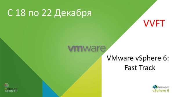 Cообщаем Вам о том, что с 18 по 22 Декабря будет проводиться курс: VMware vSphere 6: Fast Track (VVFT) Курс ориентирован на: системных администраторов системных инженеров способных интенсивно за короткий срок получить навыки управления VMware vSphere 6.0 Обратите внимание: Предварительные требования: Опыт администрирования операционных систем Microsoft Windows или Linux Понимание концепции виртуализации, представленной в курсе VMware Data Center Virtualization Fundamentals или сертификации VCA-DCV Для более подробного ознакомления с данным курс… — Читать дальше