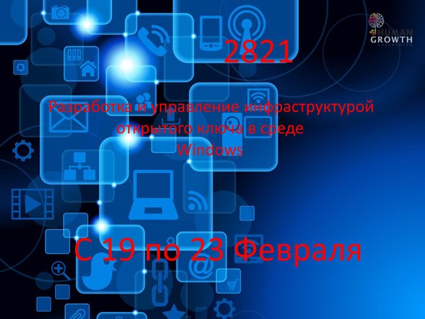 Cообщаем Вам о том, что с 19 по 23 Февраля будет проводиться курс: Разработка и управление инфраструктурой открытого ключа в среде Windows (2821) Кому следует посетить данный курс? Курс ориентирован на системных инженеров, которые отвечают за проектирование и применение решений по безопасности Для более детального ознакомления с данным курсом, пройдите по ссылке на наш сайт