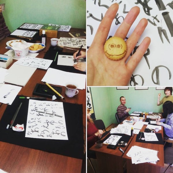 Анна Тян (09.01.2017): Мастер- класс по японской каллиграфии обычно заканчивается чаепитием :) Друзья, уже в эту субботу! Только 3места! Записывайтесь! 2500 Тг, материалы включены в стоимость #ичикава_каллиграфия @ichikawa.kz